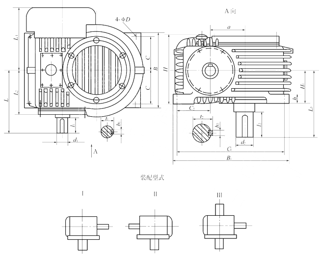 PWS80、PWS100、PWS125、PWS140、PWS160、PWS180、PWS200、PWS225、PWS250、PWS280、PWS315、PWS355、PWS400、PWS450、PWS500、PWS560、PWS630、型平面二次包絡(luò)環(huán)面蝸桿減速機(jī)主要尺寸(GB/T16449-1996)