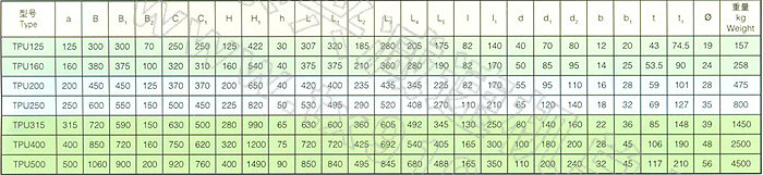 TPU125、TPU160、TPU200、TPU250、TPU315、TPU400、TPU500通用型減速機(jī)形式及外形尺寸
