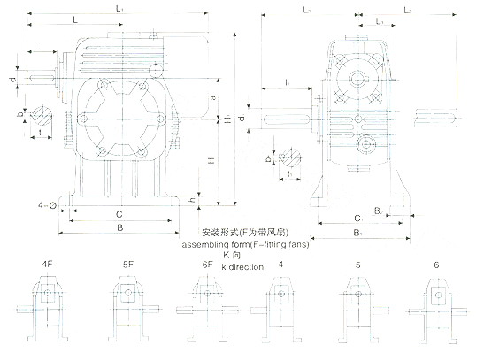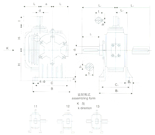A:TPG-通用型平面包絡環(huán)面蝸桿減速器、蝸桿可在蝸輪之上、之下、水平之側(cè)或垂直在側(cè)。