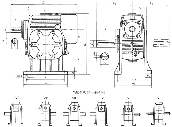 TPG80、TPG100、通用型減速機形式及外形尺寸(Ⅳ—Ⅵ)