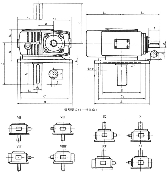 | TPG80、TPG100、通用型減速機形式及外形尺寸(Ⅶ—Ⅹ) | |||||||||||||||||||||||||||||||||||||||||||||||||||||||||||||||||||||||||||||||||
