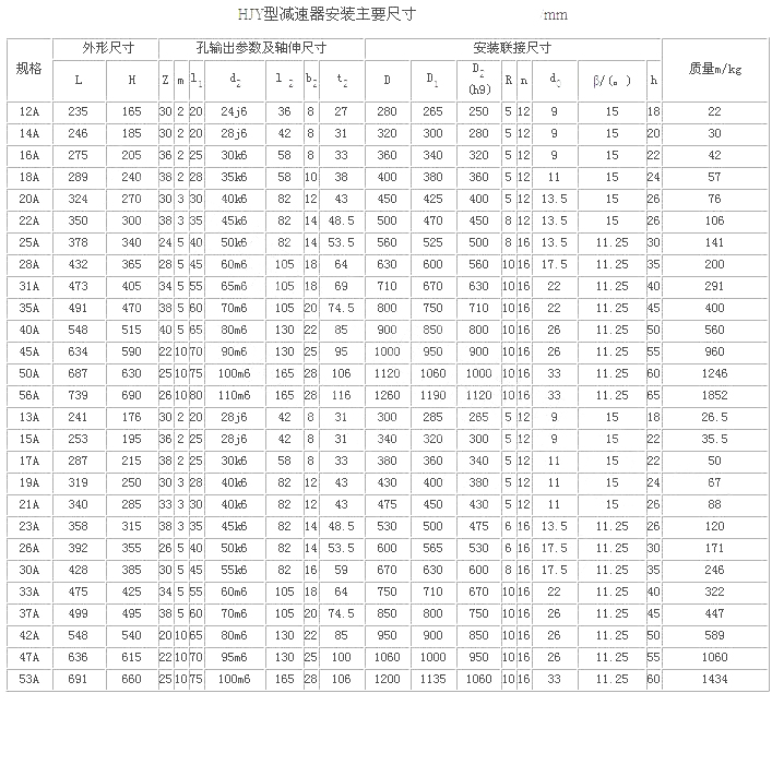 H型星輪減速器(JB/T 8712—1998)代替原混合少齒差星輪減速器(ZBJ 19006—1988)屬少齒差漸開線行星齒輪傳動,具有體積小,承載能力高,傳動比寬、密,效率高,壽命長,傳動平穩(wěn),允許高速輸入等特點。采用單元化結(jié)構(gòu),以行星齒輪、內(nèi)齒輪、滾動星輪、偏心套和行星架組合的主要單元,代號H;用擴大傳動比的附加單元代號N;用來改變輸入方向的附加單元代號Z。同一種機座號可采用4種承載能力單元結(jié)構(gòu),因而在產(chǎn)品型號后面附注A、B、C、D4個承載能力代號,即輕型、中型、重型、超重型。適用于冶金、礦山、電力 、起重、運輸、橡膠、水泥、造紙、制糖、鍋爐、建筑等領(lǐng)域,為通用型減速器。