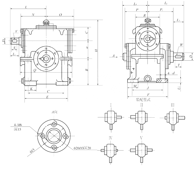 WS80、WS100、WS120、型圓柱蝸桿減速機(80~120)安裝尺寸