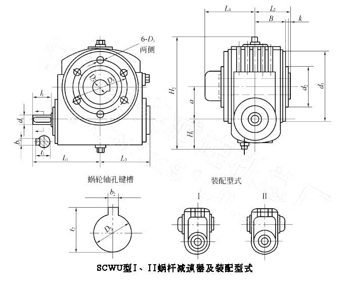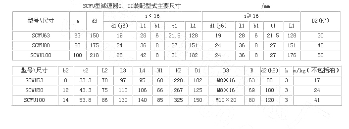 SCW 型軸裝式圓弧圓柱蝸桿減速器直接套裝在工作機(jī)主軸上,包括 SCWU ,SCWS,SCWO 三個系列。主要應(yīng)用于冶金、礦山、起重、運(yùn)輸、化工、建筑等機(jī)械設(shè)備的減速傳動。