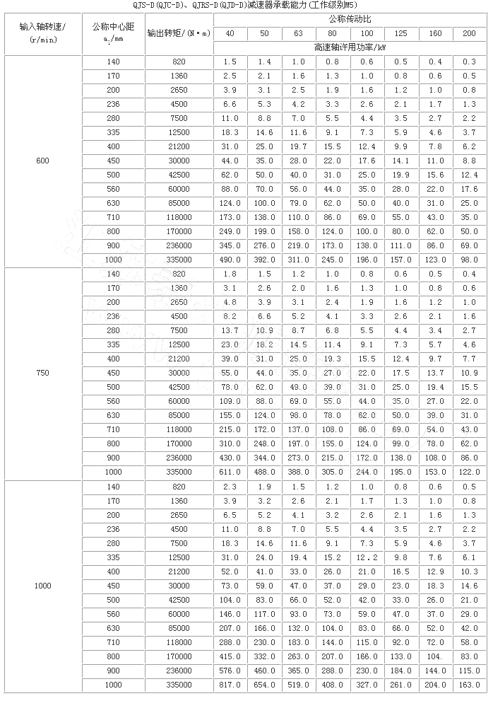 起重機(jī)底座式減速器是在三支點(diǎn)減速器的基礎(chǔ)上派生出來(lái)的。因此QJ-D型減速器的工作條件、主要技術(shù)參數(shù)、承載能力和輸出軸端最大允許徑向載荷與三支點(diǎn)減速器相同,其它有所不同。