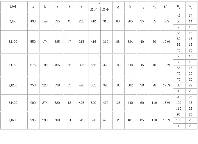 | ZJ型專用齒輪減速器外型及安裝尺寸圖 |