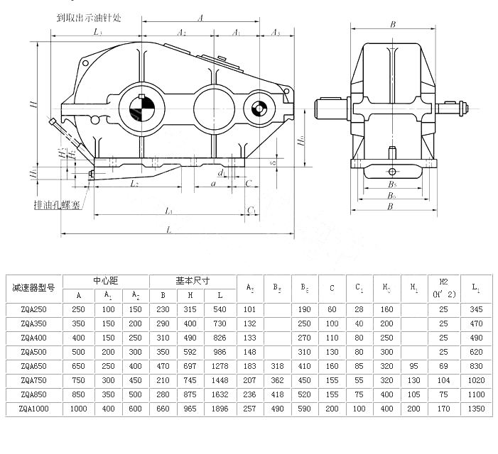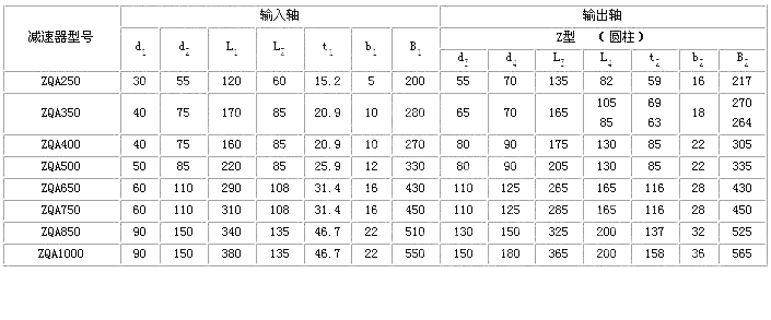 ZQA型減速器是在ZQ型減速器的基礎(chǔ)上改型設(shè)計的。為了提高齒輪的承載能力,又便于替代ZQ型,即安裝尺寸和外形尺寸、輸入和輸出軸伸不變的情況下,只改變齒輪的材質(zhì)和熱處理方式采用中硬齒面。并將ZQ型減速器的一級速比23.34改成25.02。