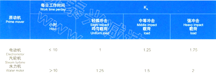 (2)確定工況系數(shù)KA (3)確定安全系數(shù)Ks