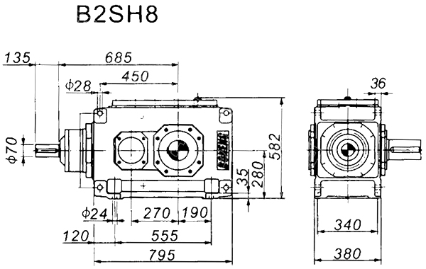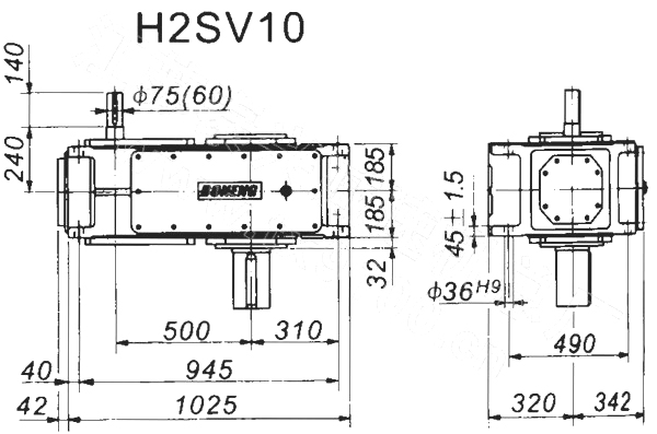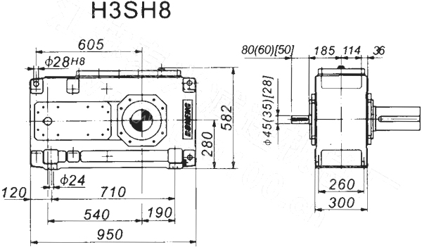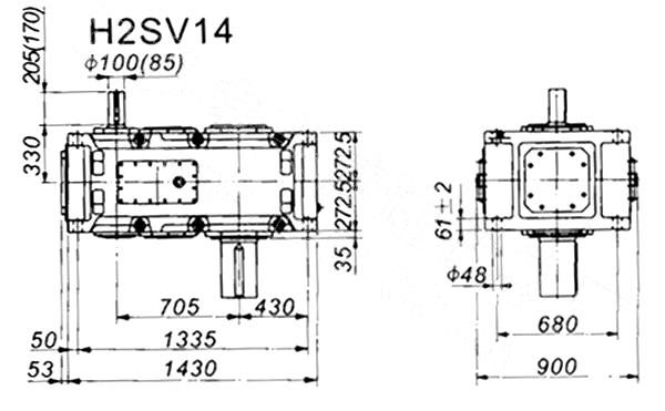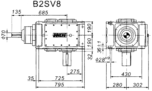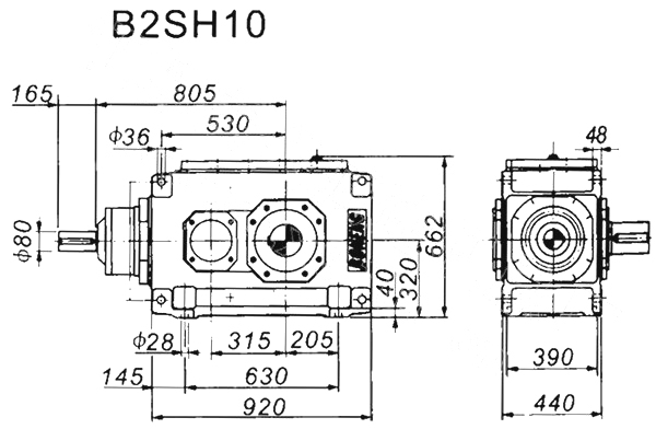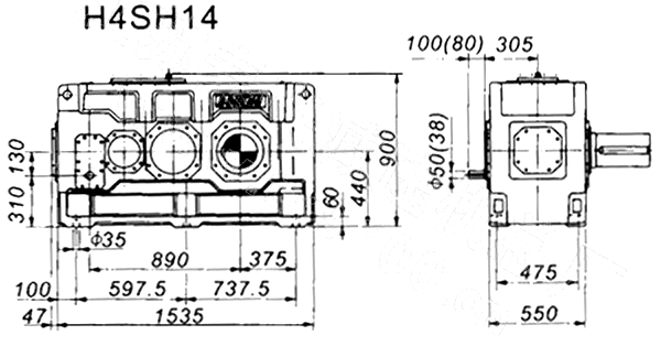 1. H、B齒輪箱采用通用設(shè)計方案,可按客戶需求變型為行業(yè)專用的齒輪箱。