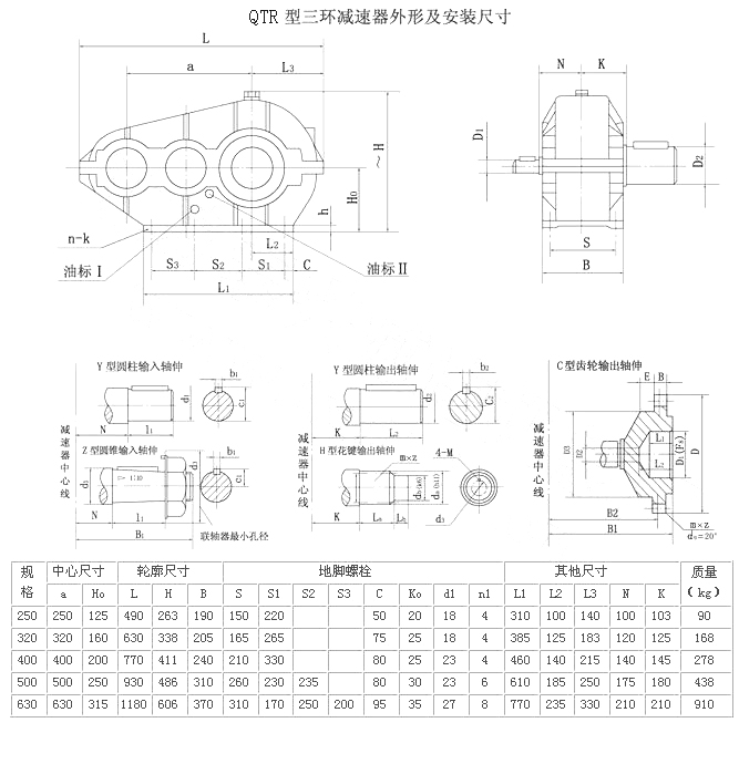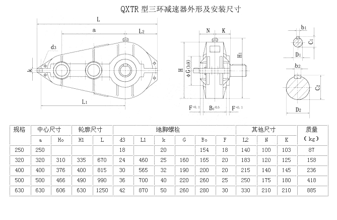 | QTR型三環(huán)減速機圖紙尺寸 |