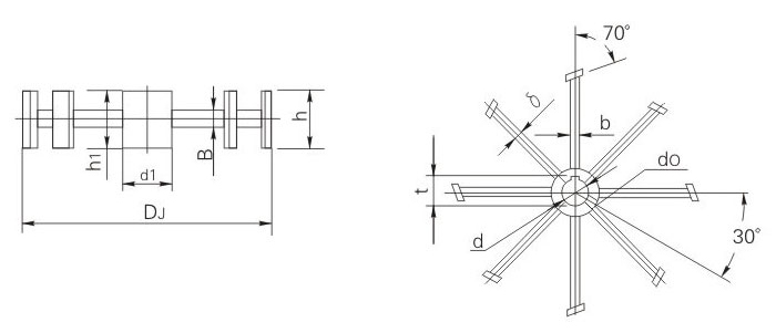 | DJ | d | d1 | h1 | B | h | d0 | 鍵槽 | δ | 重量(kg) | |