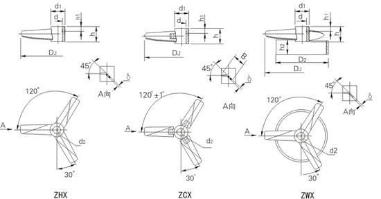 三窄葉整體旋槳式-ZHX、三窄葉可拆旋槳式-ZCX、三窄葉穩(wěn)定環(huán)旋槳式-ZWX