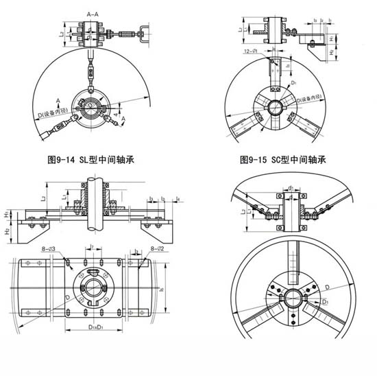 注:重量?jī)H供參考,與設(shè)備內(nèi)徑D有關(guān),SD適用于中間軸承位置高度在上封頭范圍的情況,用戶提高高度位置及封頭圖形,本公司可以供應(yīng)定位桿拉桿構(gòu)件。