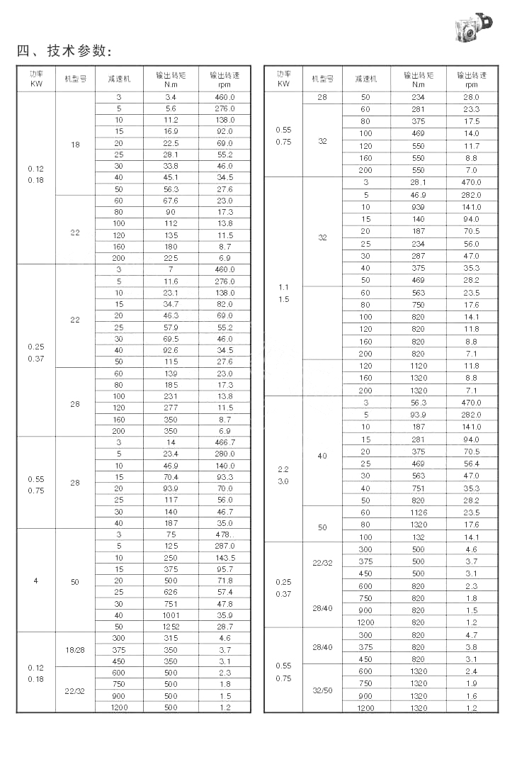 | G系列全封閉齒輪減速機(jī)技術(shù)參數(shù) |