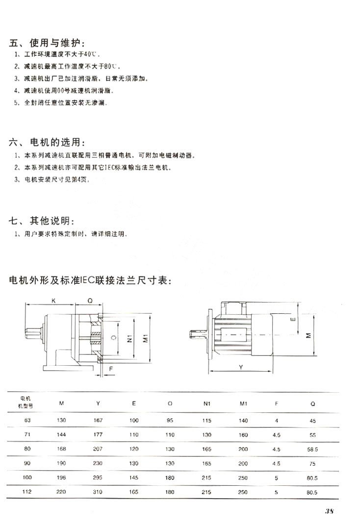 使用與維護(hù)電機(jī)的選用其他說明電機(jī)外型及標(biāo)準(zhǔn)IEC聯(lián)結(jié)法蘭尺寸表